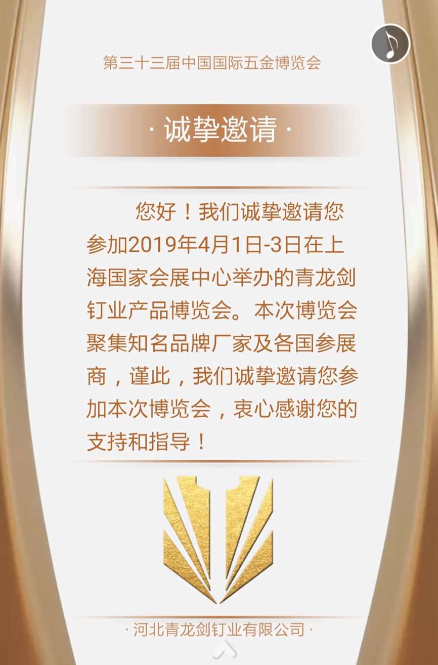 青龍劍釘業(yè)--第三十三屆中國國際五金博覽會邀請
